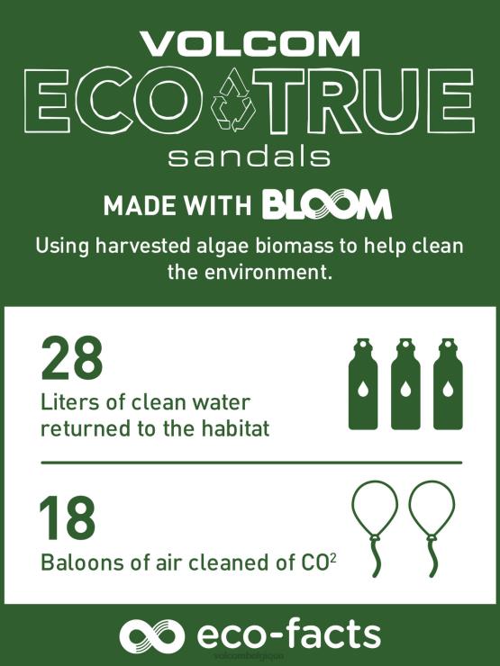 les nouvelles sandales eco concourse sont dotées d'une assise plantaire en micro-pierre et d'une semelle intercalaire en mousse moulée faite de bloom qui utilise l'excès de biomasse d'algues récoltée dans des écosystèmes nécessitant une gestion des algues pour créer des matériaux en mousse renouvelables d'origine responsable.