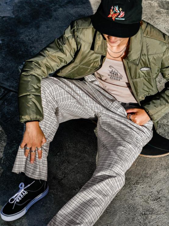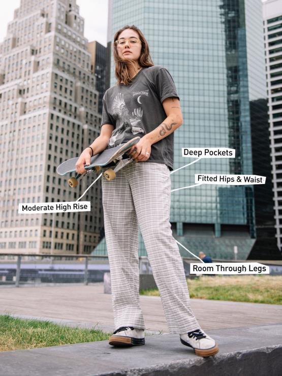 Conçu pour les femmes, inspiré du monde entier et testé sur la route, ce pantalon de skate est vraiment le meilleur. Fabriqué en collaboration avec les patineuses volcom, ce pantalon offre une taille haute modérée, des poches profondes et un élastique à l'arrière de la taille pour un ajustement confortable et flexible. rachelle vinberg sur le pantalon thisthatthem : ''c'est un pantalon pour tout le monde. J'ai eu des amis qui l'ont essayé, garçons et filles, et ils l'ont tous adoré. c'est inclusif et c'est important.''